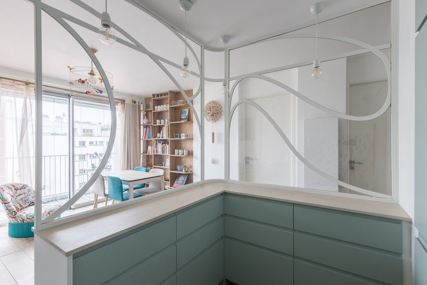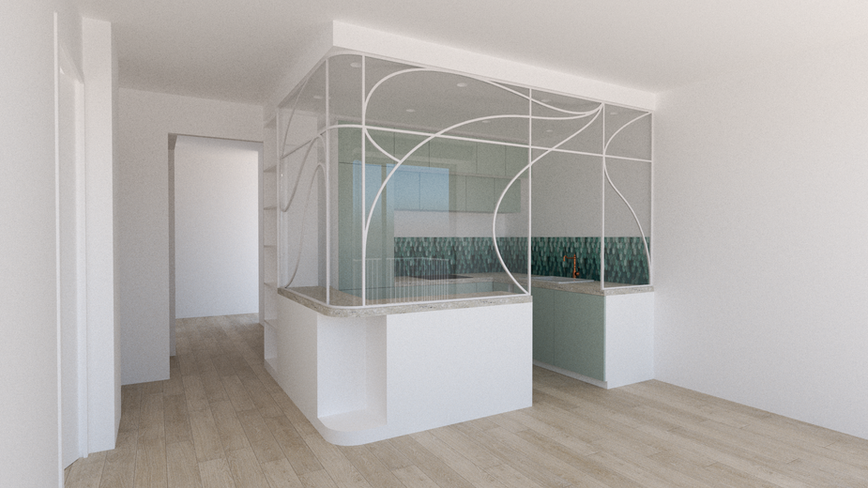 Dessin d'une verrière pour la cuisine d'un appartement se situant à Montmartre
